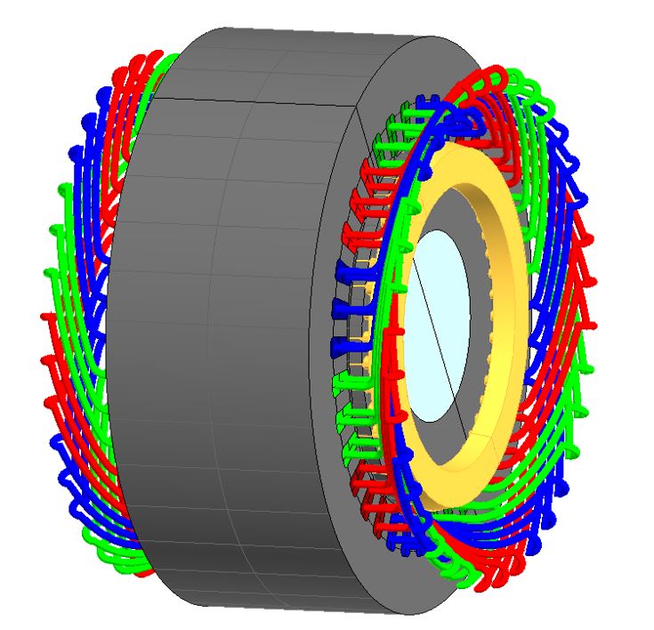 3D modelling of the induction machine with squirrel cage: Magnetic circuit + squirrel cage + stator winding |