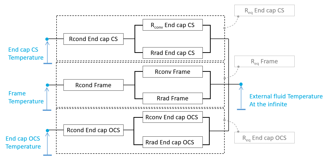 The global resistance between the frame and the external fluid - Thermal resistance network