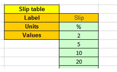 When “Table” is selected, the list of slips to be considered must be defined by using the next field: “Slip table” and by clicking on the button “Set values”.
