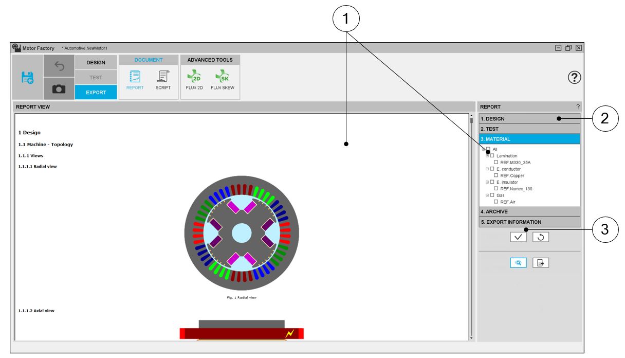 of the report:DESIGN, TEST, MATERIAL, ARCHIVE, EXPORT INFORMATION. Note: TEST and ARCHIVE will be available later when