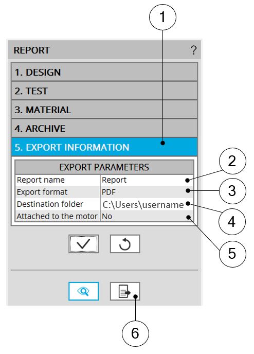 5 | It is possible to attach the report (HTML or PDF file) to the motor in the “Motor Catalog” |