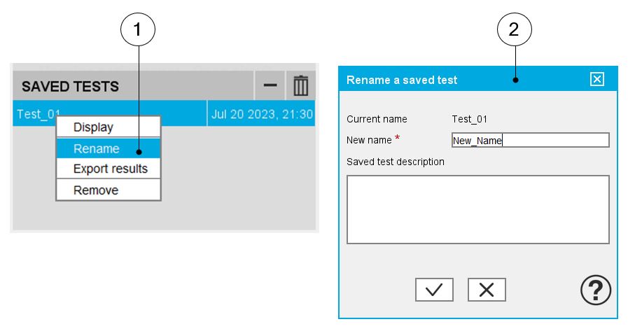 1 | Right-click on the saved test to be renamed. |