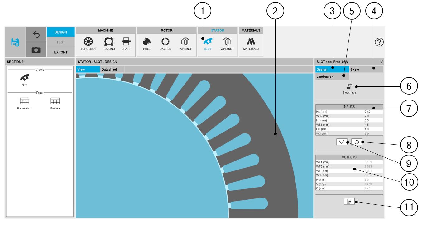 1 | Selection of the STATOR subset: SLOT panel (Click on the icon SLOT) |