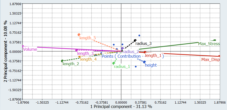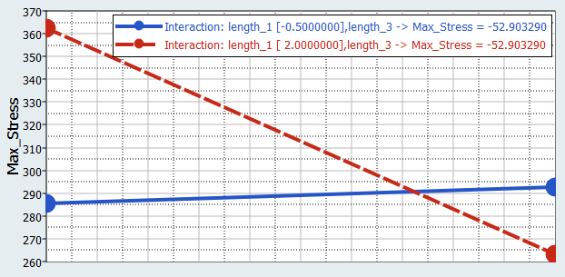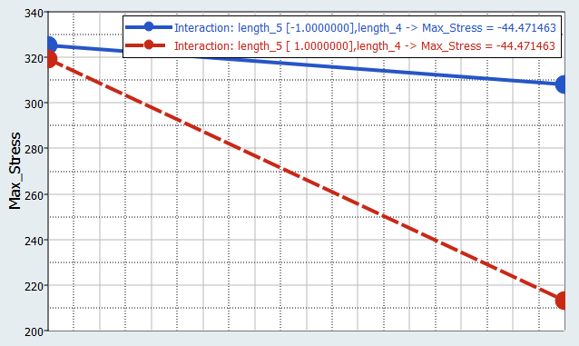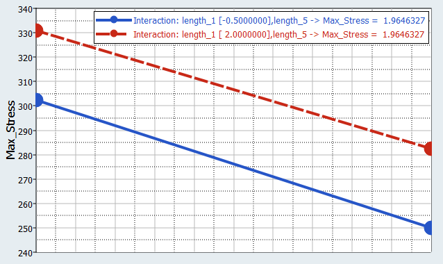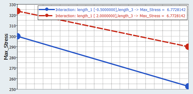 You will study the results from different parameter screening DOEs. For each screening, only the results obtained on the Max_stress output response will be reviewed using Pareto plot, Interactions, and Ordination displays.