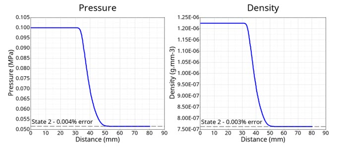 Values of all thermodynamics quantities (pressure, mass density, and so on) in the final state after the expansion fan can be computed, and the numerical results compared to analytical values.