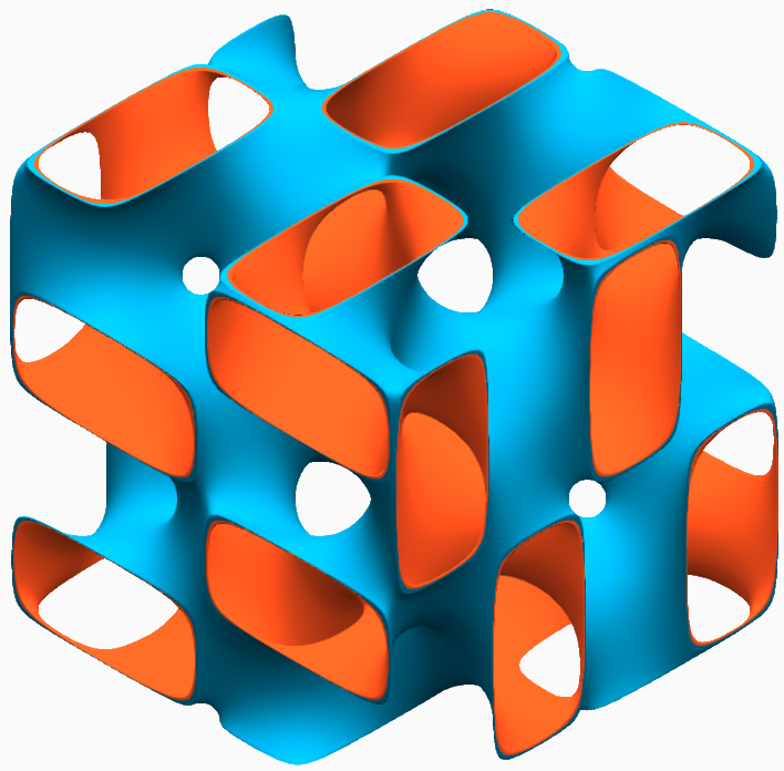 θ (Cylindrical and Spherical Only) θ is angular about the z-axis where θ = 0 aligns to the x-axis. φ (Spherical Only) φ is angular and denotes elevation (measured relative to the XY plane). - Gyroid