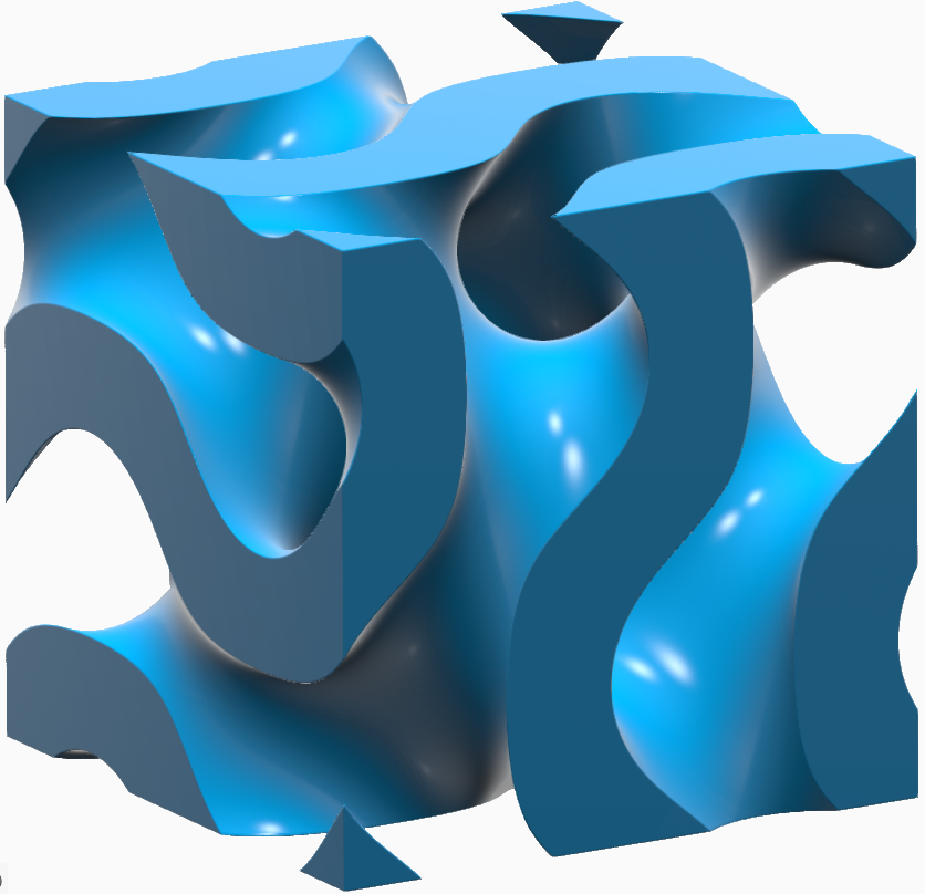 Fill a body with a surface lattice, which is a cellular structure constructed from one or sometimes two surfaces. The body can be a Parasolid, STL, PolyNURBS, or implicit geometry.
