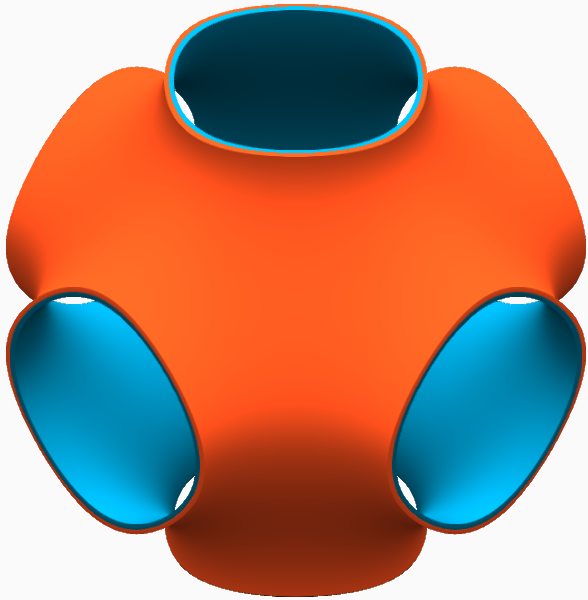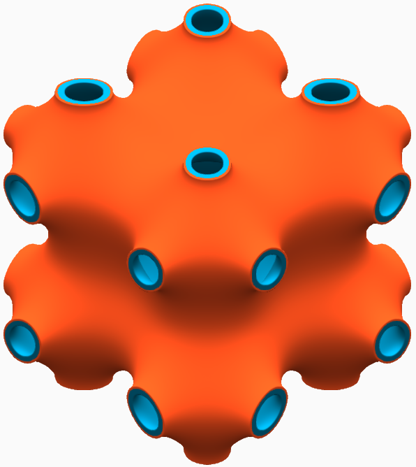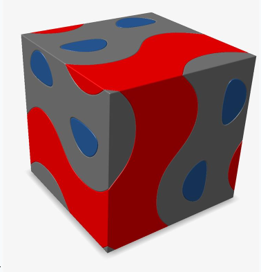 Option Description Surface - Unit Cell Select a unit cell type. In the following images, the surface that creates the lattice has been shown with blue coloring on one side of the surface and orange coloring on the other. These infinitely thin surfaces are transformed into solid volumes using the Surface Type options (Single and Double), which are described in the next section. - Gyroid