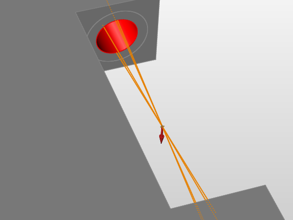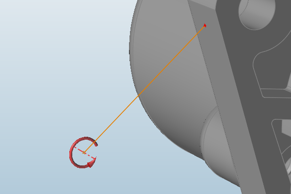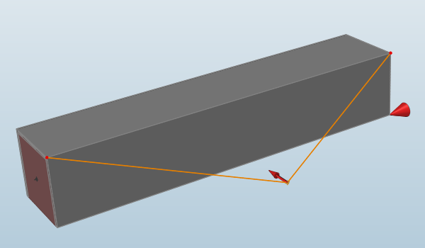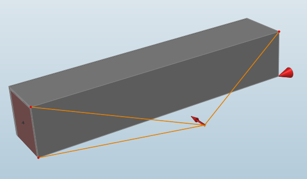 Click on a connector in the modeling views to select it. Selected connectors turn orange and the connected locations turn red. All of the connector lines from a particular force, torque, or support are considered a single connector.