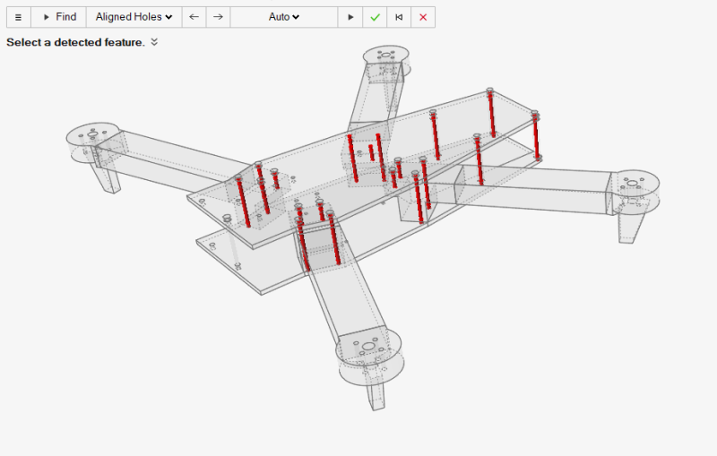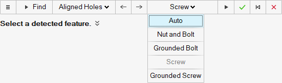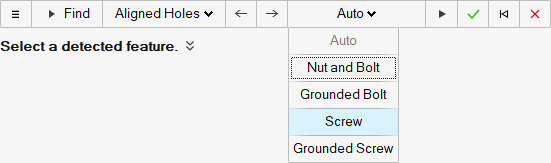3. Make sure that Aligned Holes is selected on the guide bar. This will filter the search results so that only aligned holes on neighboring parts are found, rather than single holes.