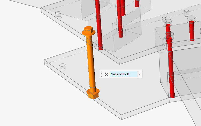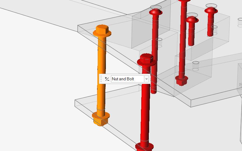 4. To manually create the fastener, select the inner surface of each hole, then click again to create the nut and bolt.