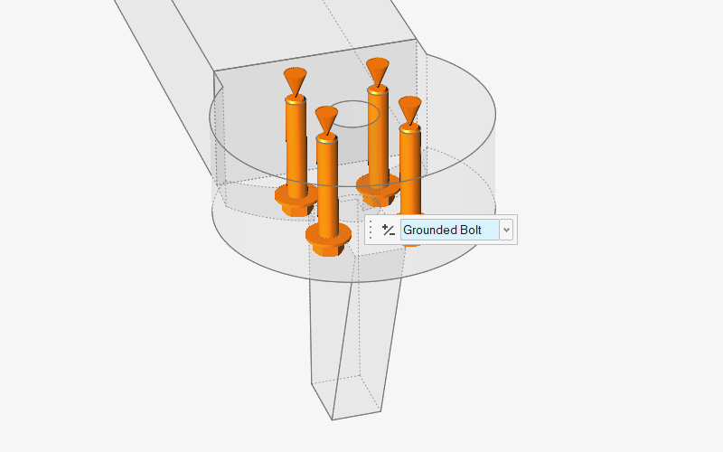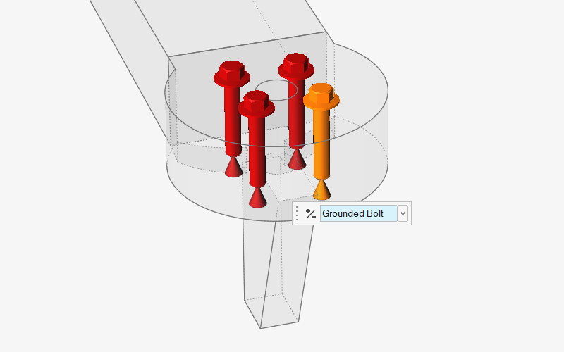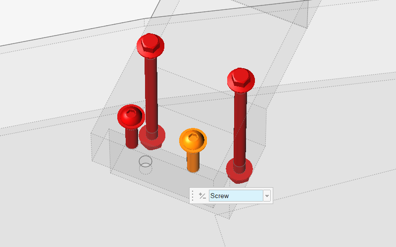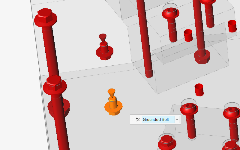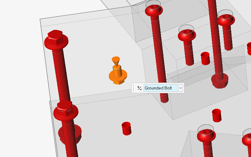 Note: Joints such as pins and sliding pins can be created by using the Joints tool on the Structure ribbon. The process is very similar to creating fasteners.