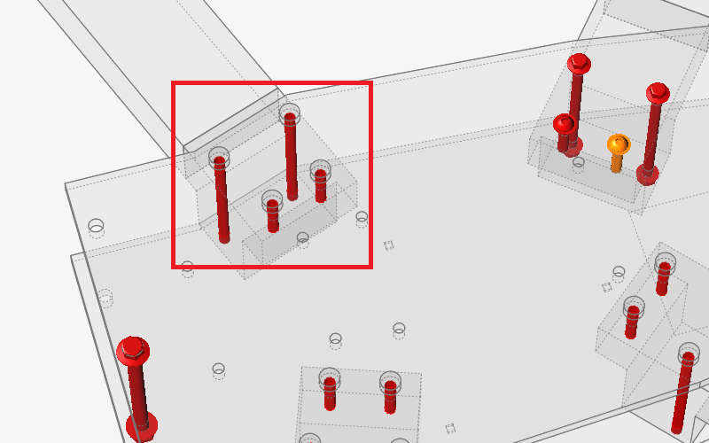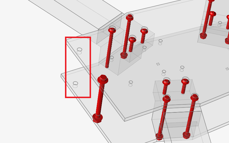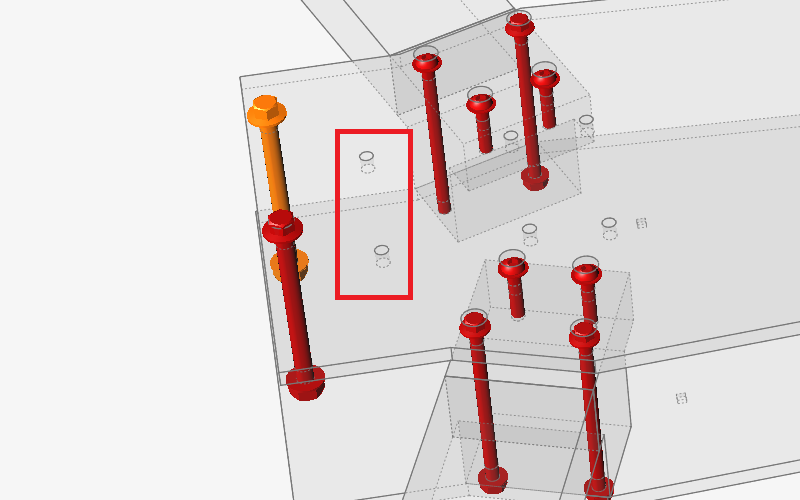 3. Note that no fastener was created at the location shown below, since Inspire did not recognize the holes as aligned.