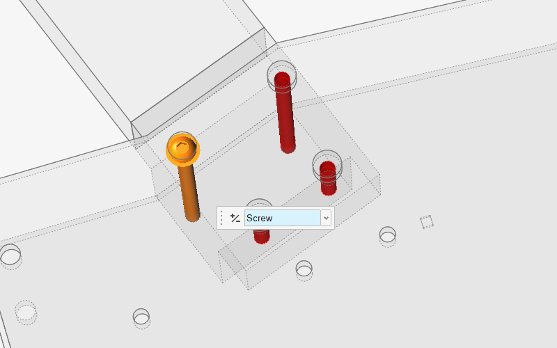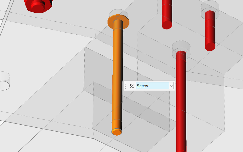 Inspire automatically places nuts and bolts in through holes and screws in blind holes.