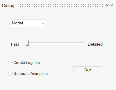 Note: The object names are not to be confused with text that can be used as a label such as "Fast" and "Detailed" that you see in the example Dialog. Text is an object itself and is listed in the Object Inspector.