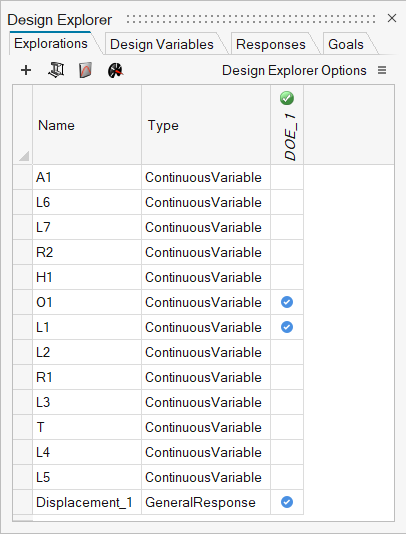 Now that you have entered the Explorations step of the Design Explorer workflow, you can create, review, and modify explorations. -