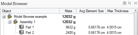 Display properties such as mass, element size, and thickness in columns in the Model Browser.