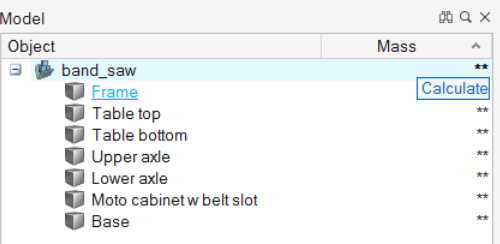 Mass calculation allows masses to be calculated and displayed in the Model Browser.