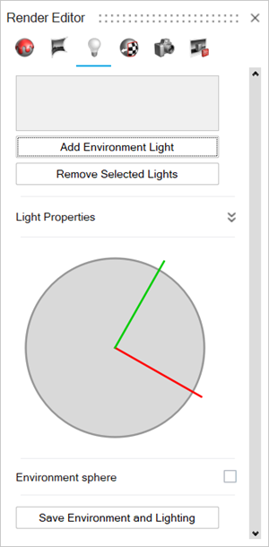 Reposition a light In the illustration, drag a yellow circle, which represents a light in the scene. - In the Render Editor, turn on Environment sphere.