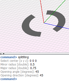 This option allows the user to create a split ring, that is, a ring surface that is open at two opposite points. The parameters that need to be supplied by the user are: