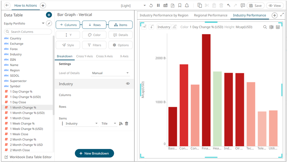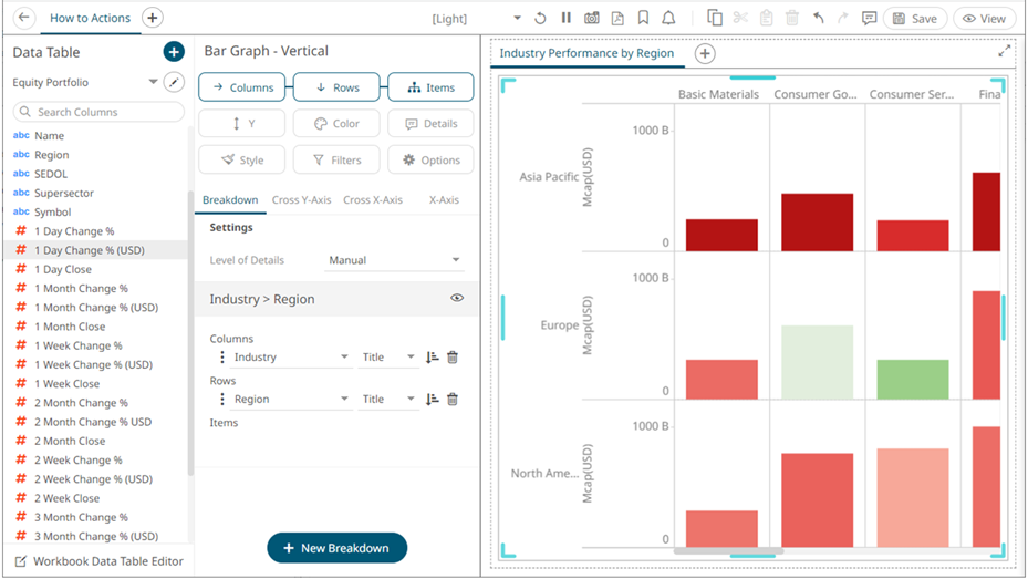 3. Add visualizations on the panel as needed.