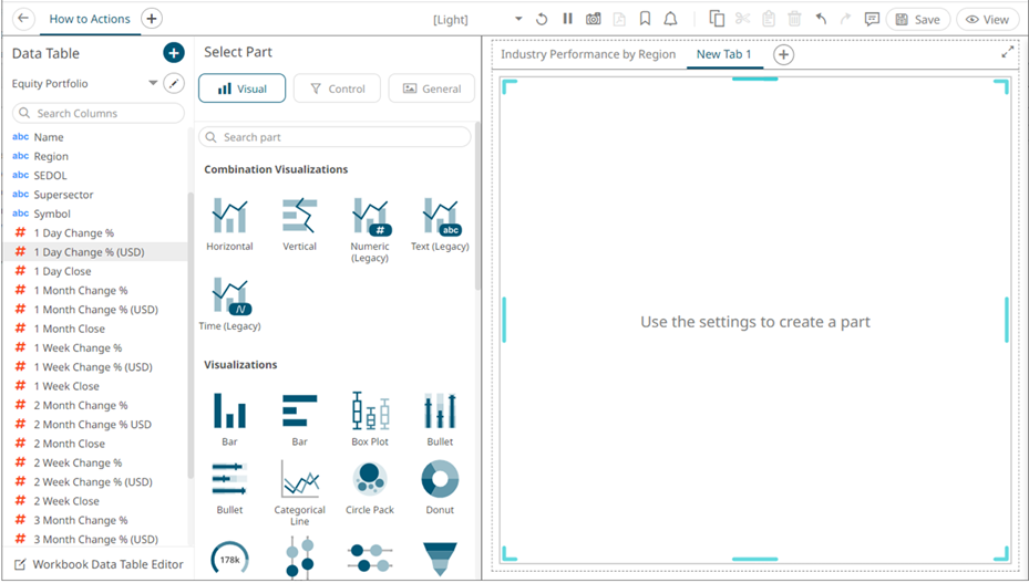 7. To copy other dashboard parts into the tab panel, do one of the following: