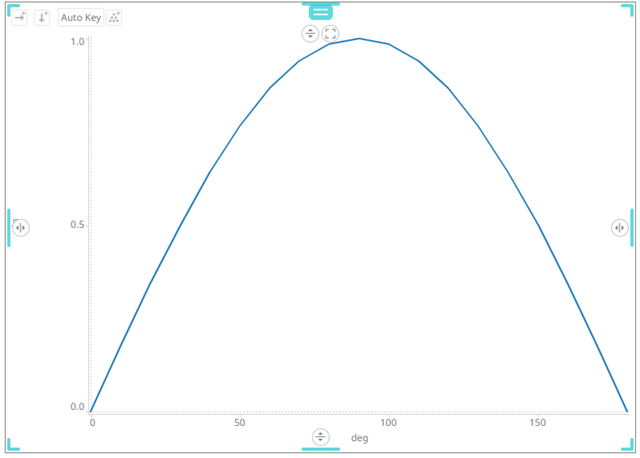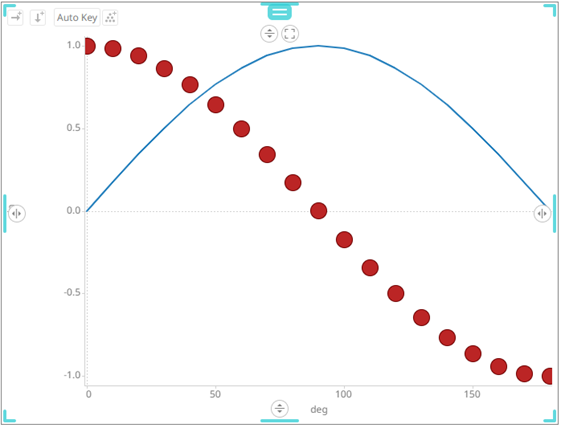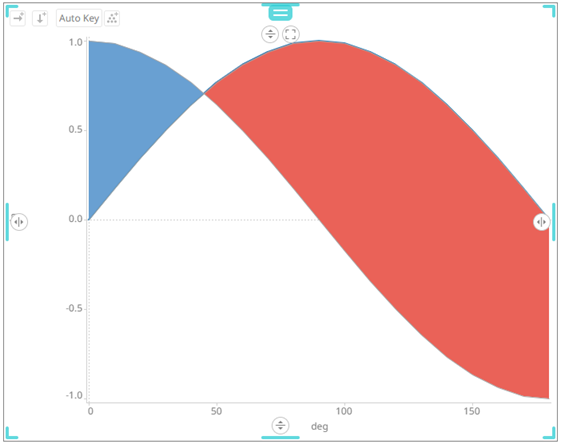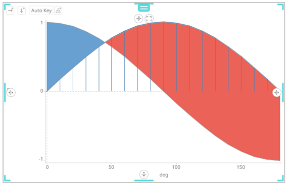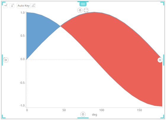 Sample 3. Single Series is enabled in the Line graph. In addition, in the Spread graph, the Value Column is set to the cos column, and the Reference Column to the sin column.