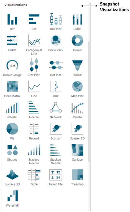 Some of the most common use cases for data visualization software require the system to display information about a data set as it exists at a particular point in time. These snapshot visualizations are extremely useful for understanding relative quantitative and qualitative measures and enable users to gain a comprehensive understanding of complex data sets very quickly.