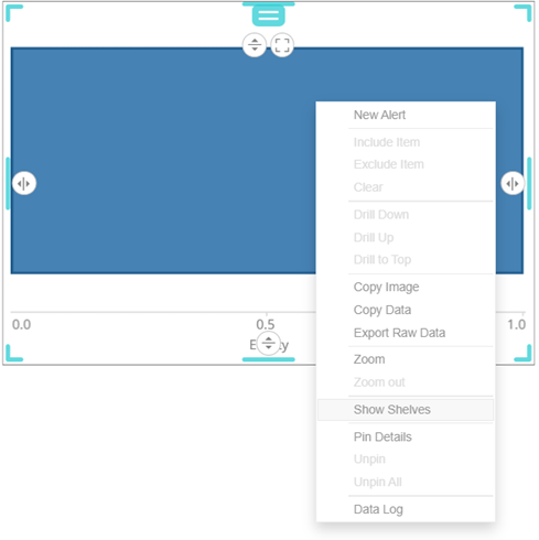 To display the shelves, right-click on the visualization and select Show Shelves on the context menu.
