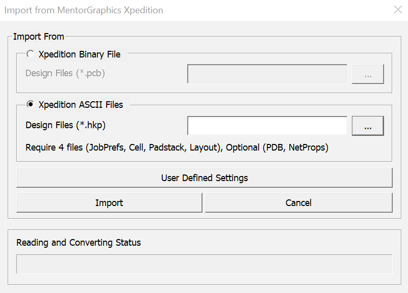 From the menu bar, click . The Import from MentorGraphics Board Station dialog opens.