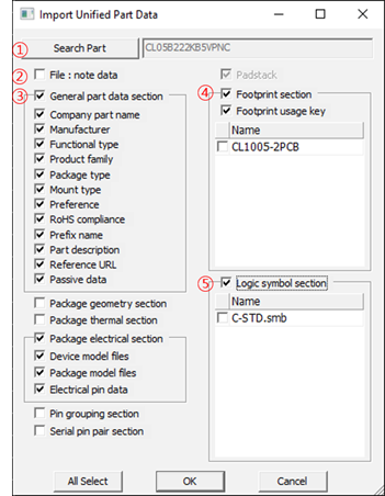 - Footprint section: Check for the footprint information to be imported of the selected part.