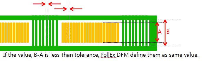 - Tolerance: Tolerance value between TCP dummy pad width and TCP component pin width. If the difference is less than tolerance, PollEx DFM defines the two values are the same.