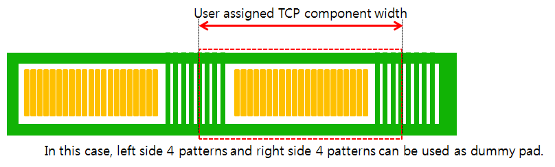 - Solder Mask Existence in Dummy Pad Area: TCP dummy pad should have solder mask. To check if the dummy pad has solder mask or not, use this option.