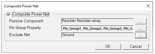 - Pin Group Property: In the case of a passive component of 3pin or more, pin mapping information is required for composite. Set the Property Name with pin mapping information.