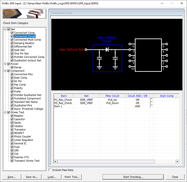 - Start Comp: Select a specific component group that included in filter circuit. The DFE choose target nets which is connected to this component among net group defined at stage Net.