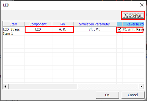 Set LED component parameters for the Transient Stress Test item.