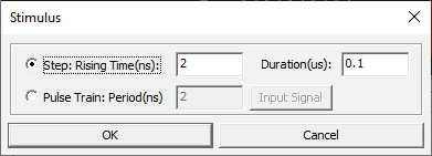 input stimulus of SPICE net list. You can assign Step Pulse or Pulse