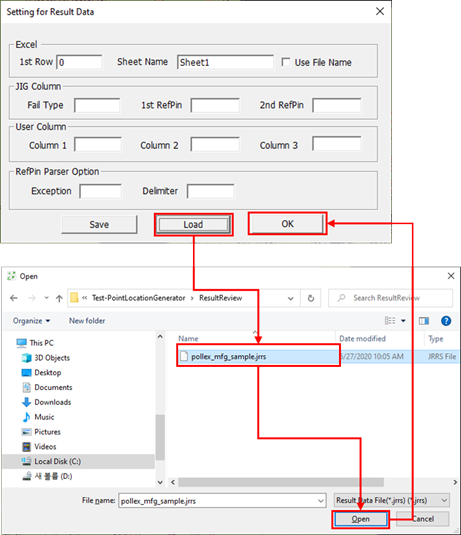 in manufacturing sites and to compare them with the original design data. Test-Point Location Generator is under the Manufacturer menu in PollEx PCB including three menus; Extract JIG Data, Result