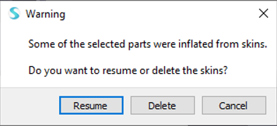 図 1.- Resumeをクリックしてスキンを保持するか、Deleteを選択してスキンと共にシートを削除します。