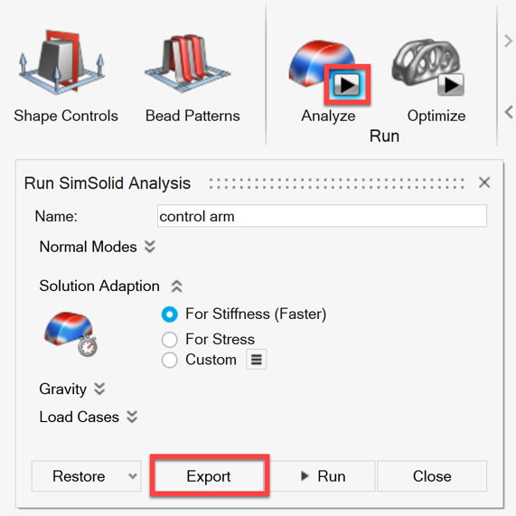 - 形状を手動でのSimSolidへのインポートが容易な.SSJファイルにエクスポートする場合は、Exportを選択します。