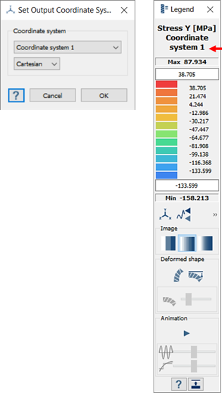 図 3.注: Set Output Coordinate Systemは、静解析、モーダル解析、および動解析に対応します。 -