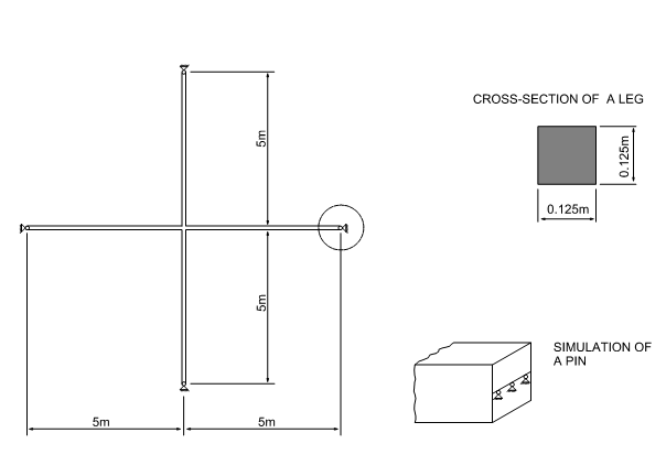 ピンは、直線に適用されるゼロ変位を介してシミュレートされます。クロスの前面は、面外変位によって固定されます。