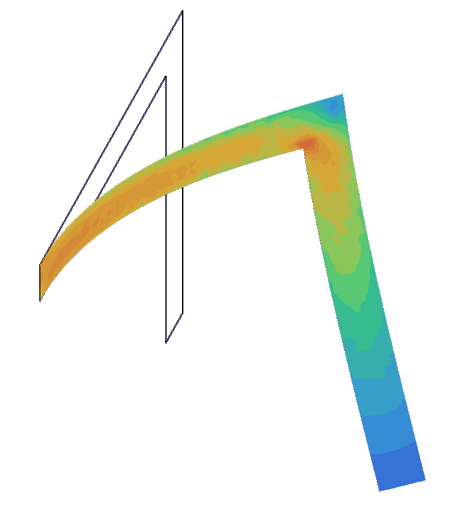 図 3. 荷重1.4 Nでの変形形状とフォンミーゼス応力のプロット