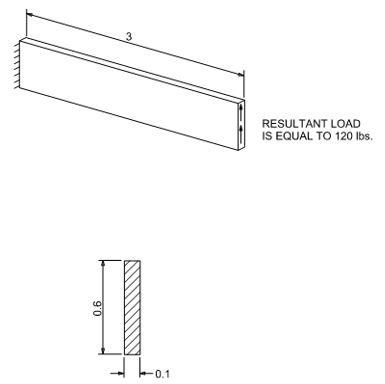 テスト番号VS07 120 lbsの垂直せん断荷重を受ける片持ち板の固定端での曲げ応力を求めます。