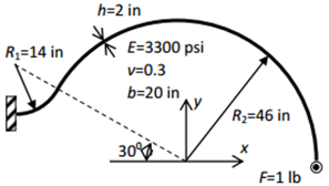 テスト番号VS11 太く、二重にカーブした梁の自由端での先端変位を求めます。