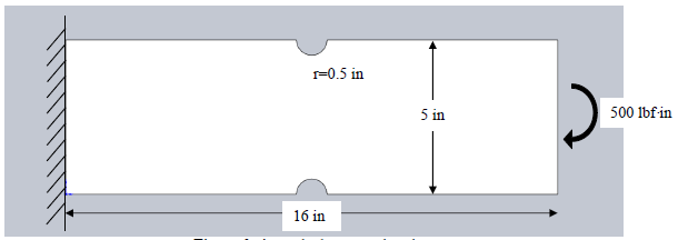 左面は固定されています。荷重は、右面に適用される500 lbf-inのモーメントです。