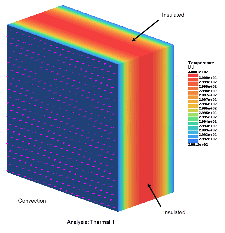 一枚の板が、1 x 1 x 0.5インチのソリッドによってシミュレートされます。ソリッドの側面は断熱されており、板の表面に垂直な方向にのみ熱が伝達されます。