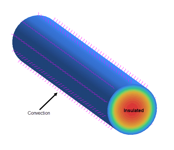 鋼線は5インチの長い円筒でシミュレートされます。円筒の端面は断熱されており、円筒の中心線に垂直な方向にのみ熱が伝達されます。熱拡散率は、1フィートの長さの鋼線1本あたりの熱流量から計算されました。