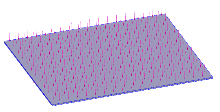 単純支持された正方形薄板(10 x 10 x 0.05 m)が、時間的に一定のままである急激に加えられた均一な圧力P=100 Paを受けます。この板のピーク動力学応答を求めます。