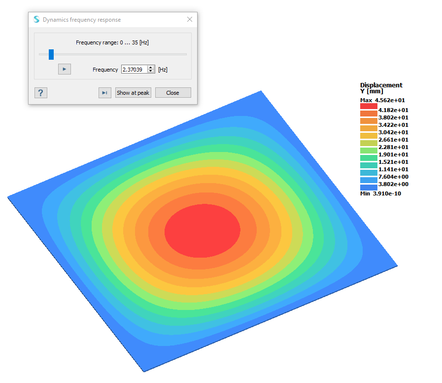 励振振動数が板の最初の固有振動数に等しくなると、ピーク応答に達します。